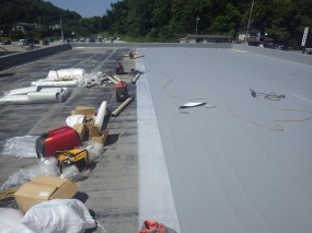 屋上防水を行っています3 投稿日時: 2016/05/29 投稿者: 川口リファイン 5月はお天気にも恵まれ、スムーズに 施工できました。 とはいえ時間規制があるため、 1日に片面ずつ仕上げていく方法を行いました。 残りの片面の施工。 とりあえず1面完成です。 つづく