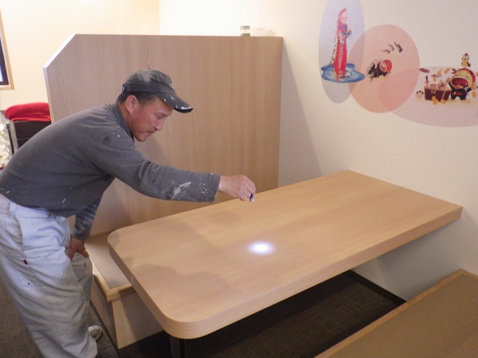 テーブルに抗菌コーティングをしてみます。