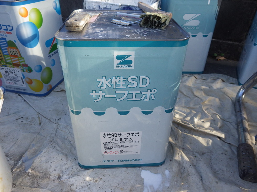 住宅塗り替えです3。 投稿日時: 2018/08/25 投稿者: 川口リファイン 前回シーリングが完了したので今回は いよいよ塗装です。 台風が去ったとはいえまだ風が強いので 1Fから施工します。(本来は2Fから) 今回使用する塗料は 下塗りはエスケー化研の水性SDサーフエポプレミアム 中塗りと上塗りは 同じくエスケー化研の水性セラミシリコンです。 ↑ 中塗りは目地色でN-40 ↓ 上塗りは17-40Dです。 ↓ 下塗り完了です。 ↓ で、同じアングルで中塗り完了です。 実はここからが今回のメインです。 つづく。